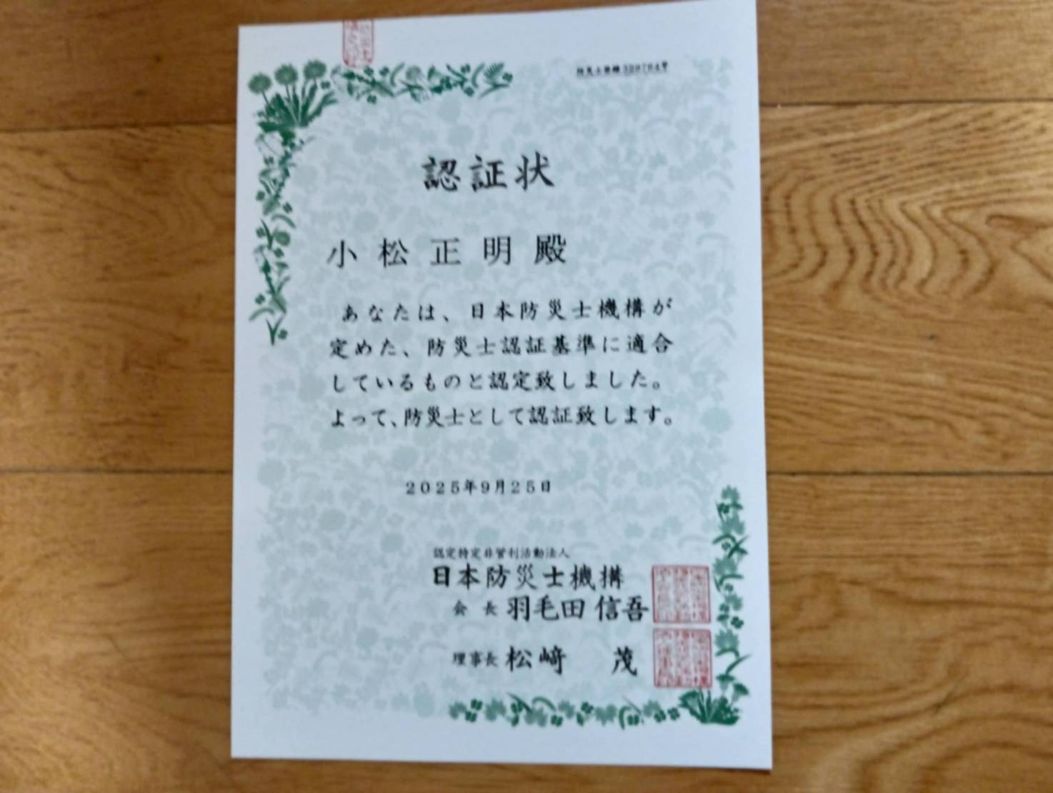 防災士の資格を取得しました