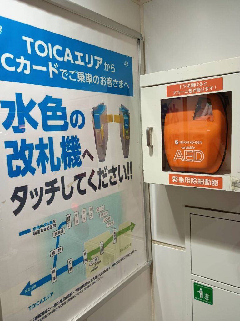 熱海駅では、駅構内で体調を崩した人のためのAEDについて調べました。