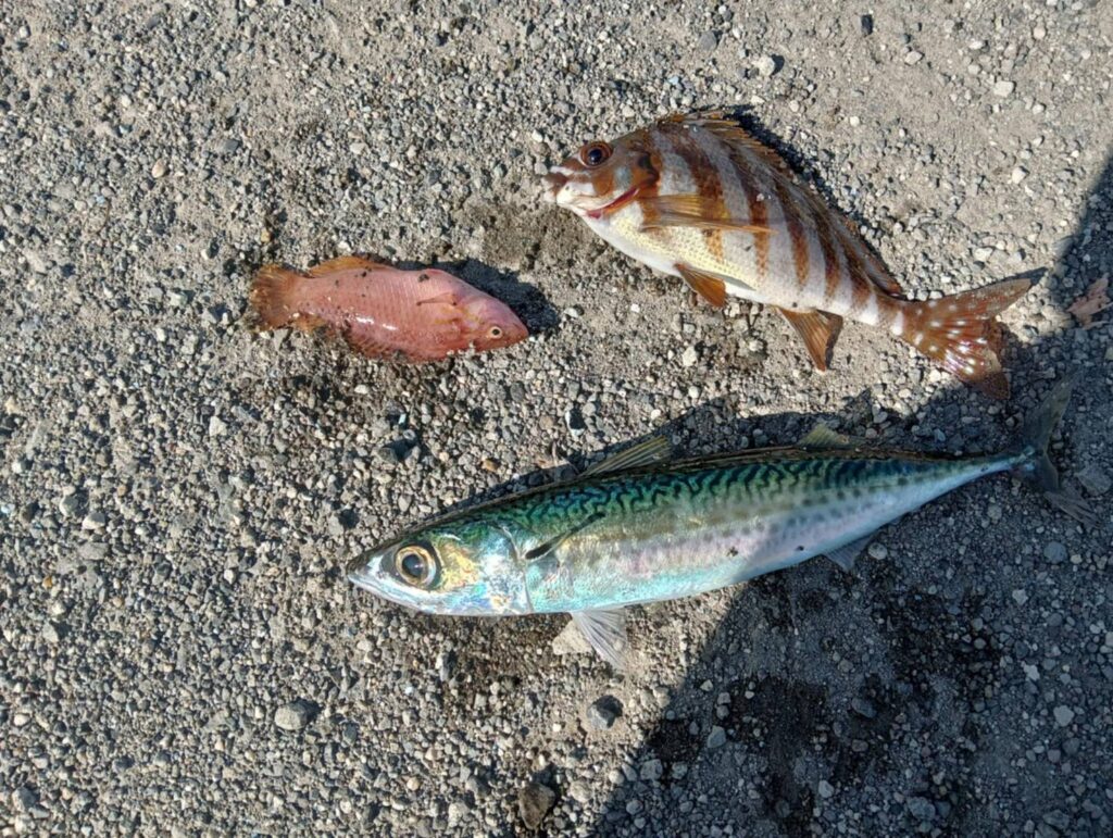 サバ、イワシ、ネンブツダイ、タカノハダイ、ベラ、たくさんの魚を釣りました。