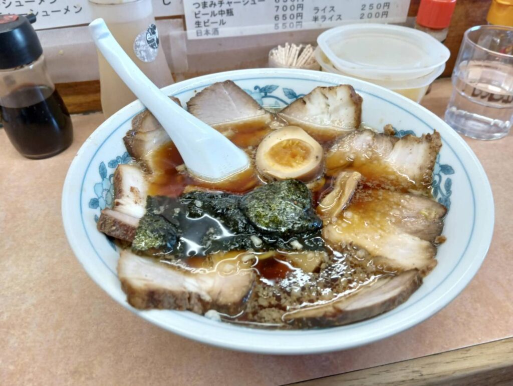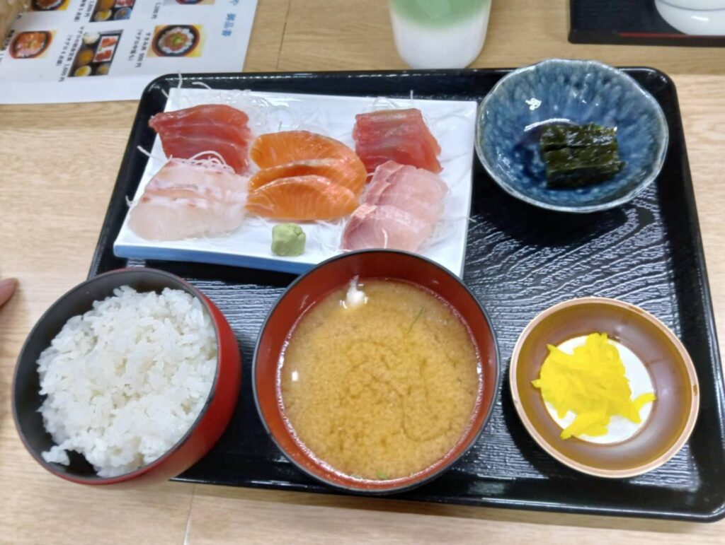 また、「まぐろや」でお刺身定食、「雨風本舗」で塩チャーシューメンを食べました。
