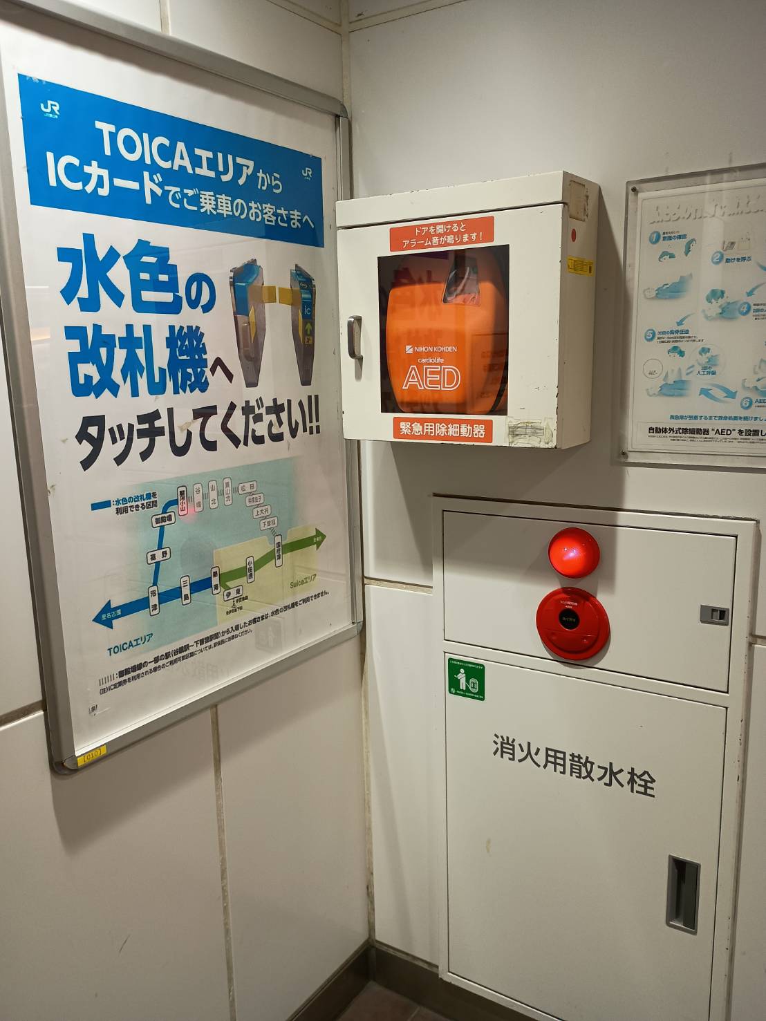 AEDはわかりやすい場所に設置されていました。